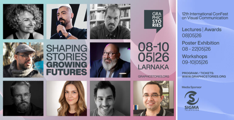 Το 12ο Διεθνές ConFest Οπτικής Επικοινωνίας, Graphic Stories, επιστρέφει δυναμικά το τριήμερο 8–10 Μαΐου 2026, στο Alexander College στη Λάρνακα, επιβεβαιώνοντας τον ρόλο του ως μια από τις σημαντικότερες διεθνής διοργανώσεις οπτικής επικοινωνίας στην Κύπρο.